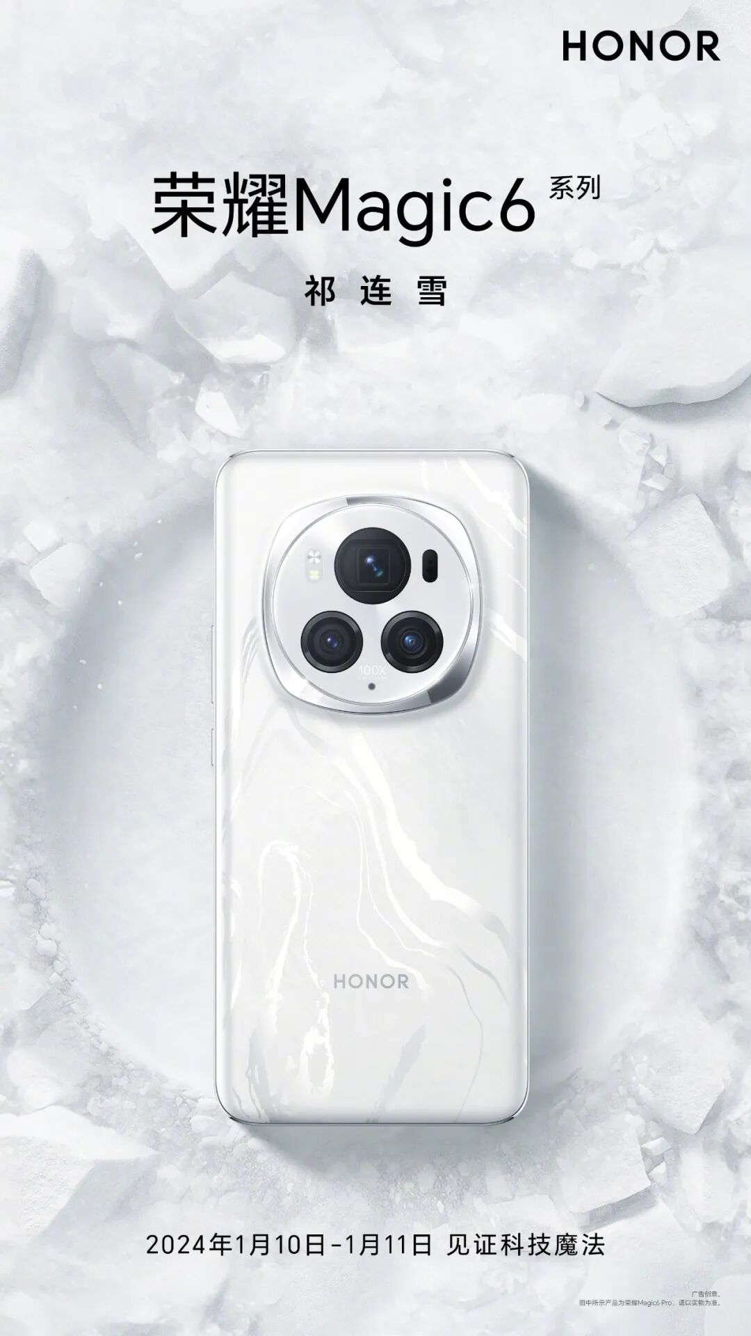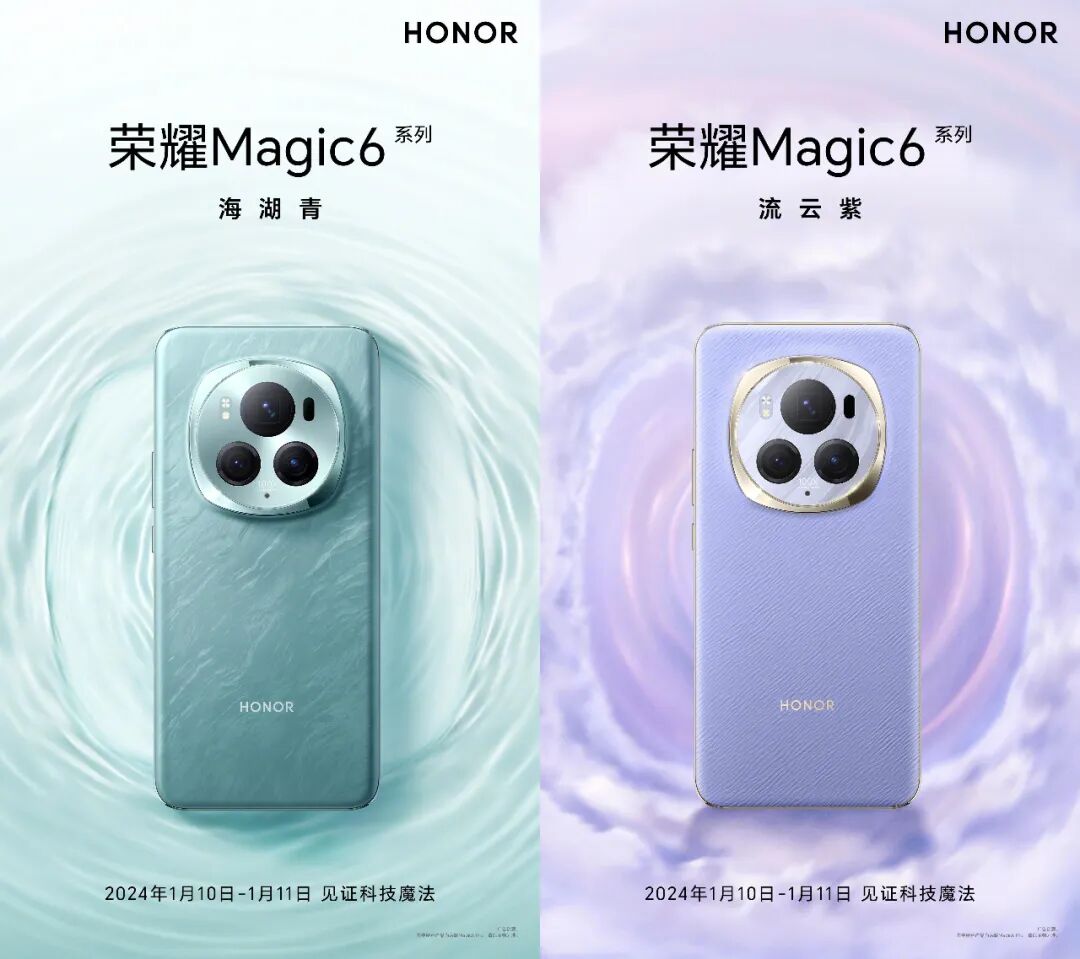 近日,荣耀官宣将在1月10日下午举行荣耀MagicOS 8.0发布会,1月11日晚上发布Magic6系列及荣耀保时捷设计新品,这几天荣耀CEO赵明陆续晒出了Magic 6 Pro的海湖青配色、流云紫配色,今天白色版本也正式公布。