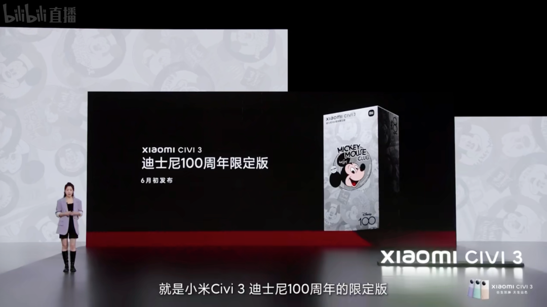 最后小米还公布了one more thing,小米Civi 3 迪士尼100周年限定版将于6月初发布,从包装盒可以看到是联动米奇经典元素,感兴趣的小伙伴可以关注下后续消息。