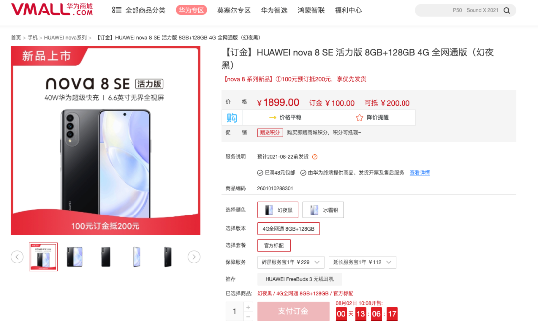 这周结束的有些匆忙~因为中间夹杂了中兴Axon 30屏下和华为P50系列的发布会,对其他新机并没有太关注,才注意到7月27日华为上架了一款新机:nova 8SE活力版。