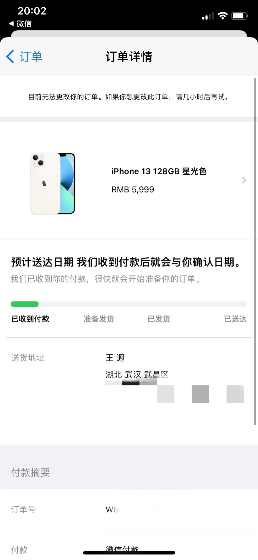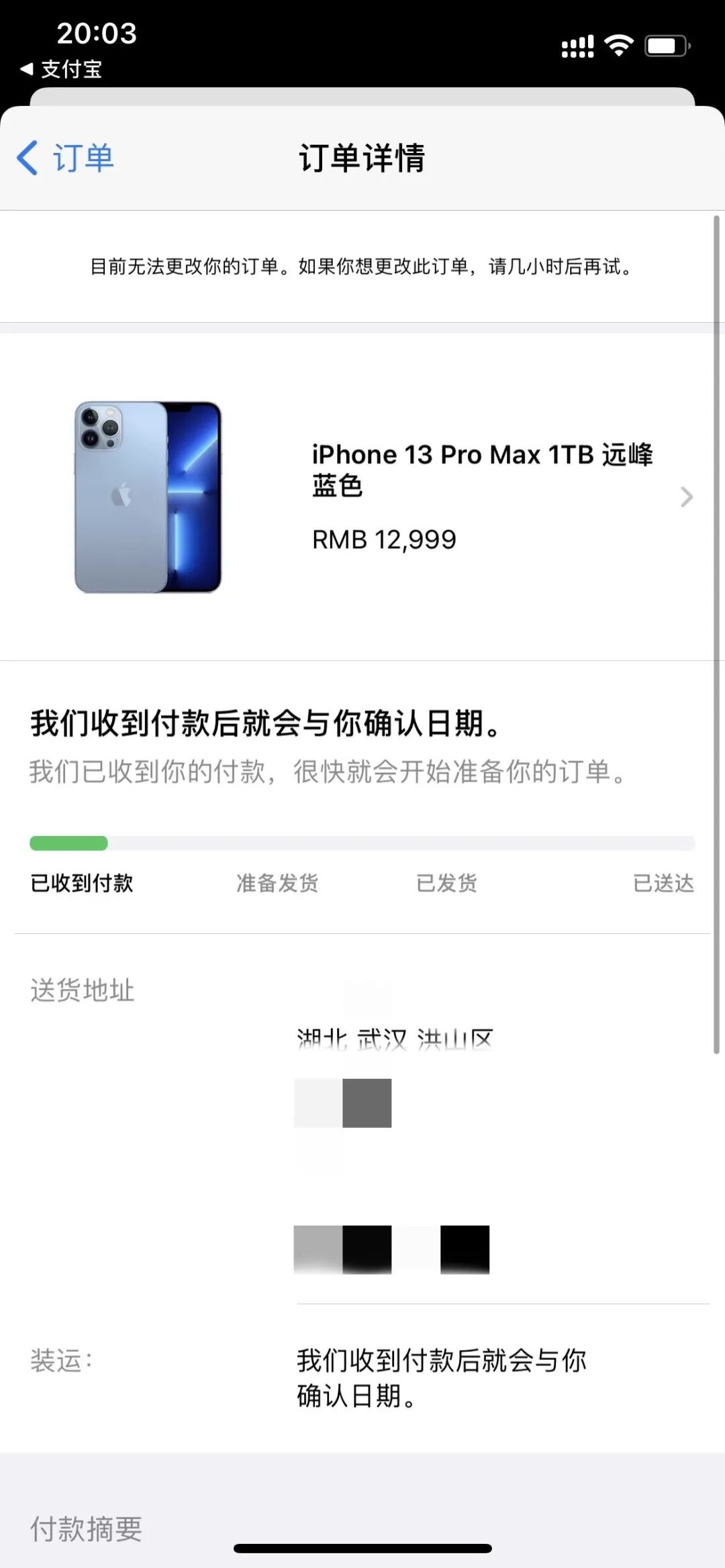 最终在官网Apple Store购买了一台128GB的iPhone 13、1TB版的远峰蓝iPhone 13 Pro Max,因为武汉没有AppleStore直营店,所以还有一台是在官方授权店线下取货。目前官网购买的iPhone 13显示预计9月24日送达,13ProMax则是预计10月2日送达。希望都可以早日收货吧。
