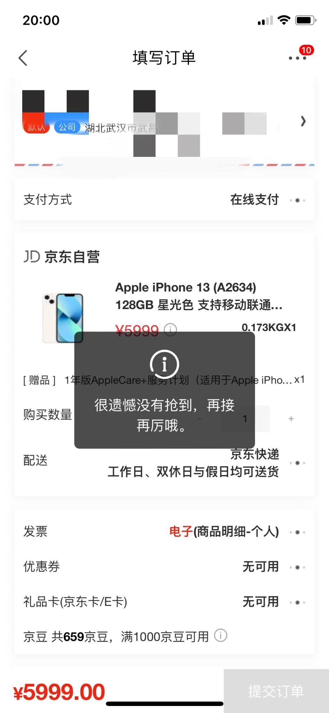 昨晚20点,小白准时开抢,结果某东没抢到,夕夕也没抢到券。
