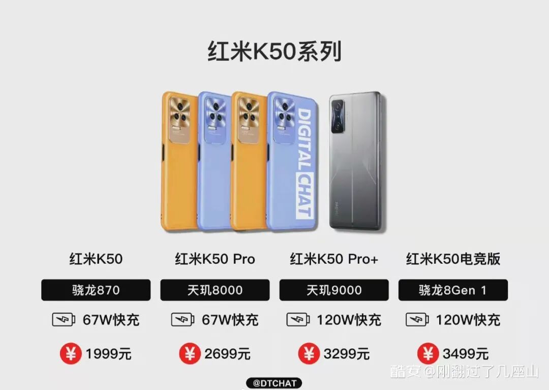 另外有网友基于之前爆料制作了一张爆料汇总图,表示接下来还在路上的K50系列新机:①K50或为1999元起,骁龙870/67W充电;②K50 Pro或为2699元起售,联发科天玑8000/67W充电;③K50 Pro+或为3299元起售,联发科天玑9000/120W充电。先供大家参考,最终售价以官方为准。