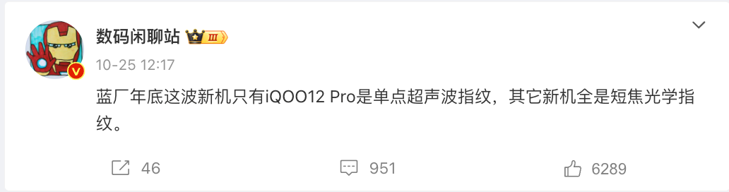 另外值得注意的是,爆料称蓝厂2023年底这波新机只有iQOO 12 Pro是单点超声波指纹,其它都是短焦光学指纹,换言之vivo X100、X100 Pro也是短焦光学指纹(明年Q1的X100 Pro+预计超声波~)。大家手机是什么指纹方案?