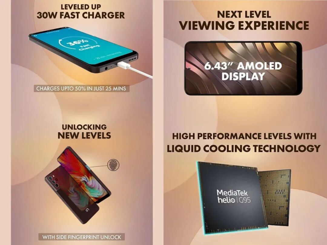 核心配置上,Micromax IN Note 2搭载基于12nm工艺的联发科G95处理器,4G手机,LPDDR4x+UFS 2.1,5000mAh电池+30W充电,前置1600万像素,后置四摄4800万像素主摄+500万超广角+200万景深+200万微距,保留3.5mm耳机孔,支持MicroSD拓展,运行Android 11等。