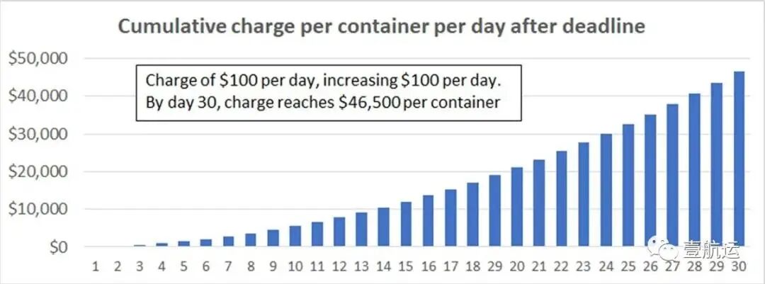 根据新规的要求,此项费用首先将由船公司来支付。但可以肯定的是,船公司几乎是肯定会将所有收费转嫁给托运人(货主或代理的货代),每天在原有基础上递增100美元!这相当于货主无端多了一笔“高利贷”!