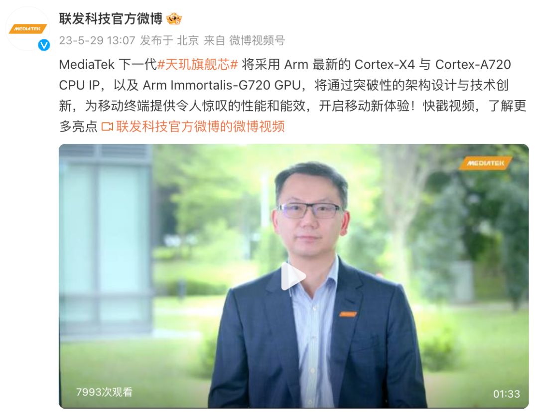 联发科这边,官预热称天玑9300将采用Arm最新的Cortex-X4与Cortex-A720 CPU IP,以及Arm Immortalis G720 GPU。爆料具体CPU架构或为4*X4(1*X4+3*X4m 频率最低3.0Ghz)➕4*A720中核(频率最低2.0Ghz)。
