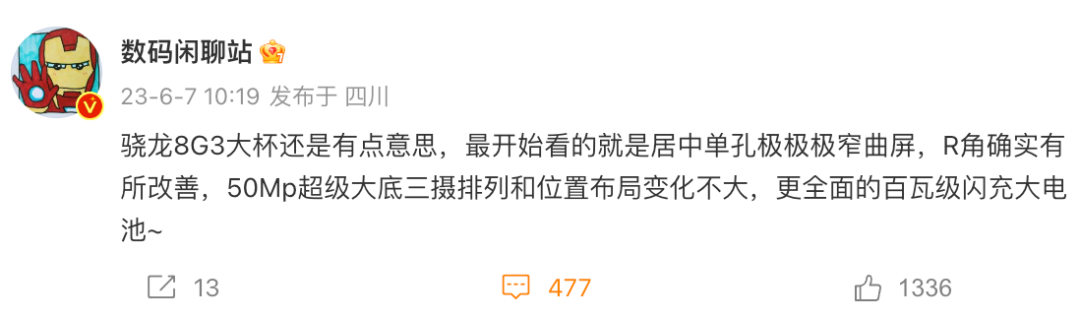 最后是小米14系列的相关消息,除了之前爆料的全系搭载骁龙8 Gen3、小米14延续极窄边框小直屏、小米14 Pro可能有一直一曲双版本、小米14 Ultra明年发布(预计继续打磨索尼IMX989)外,今天更多细节释出。