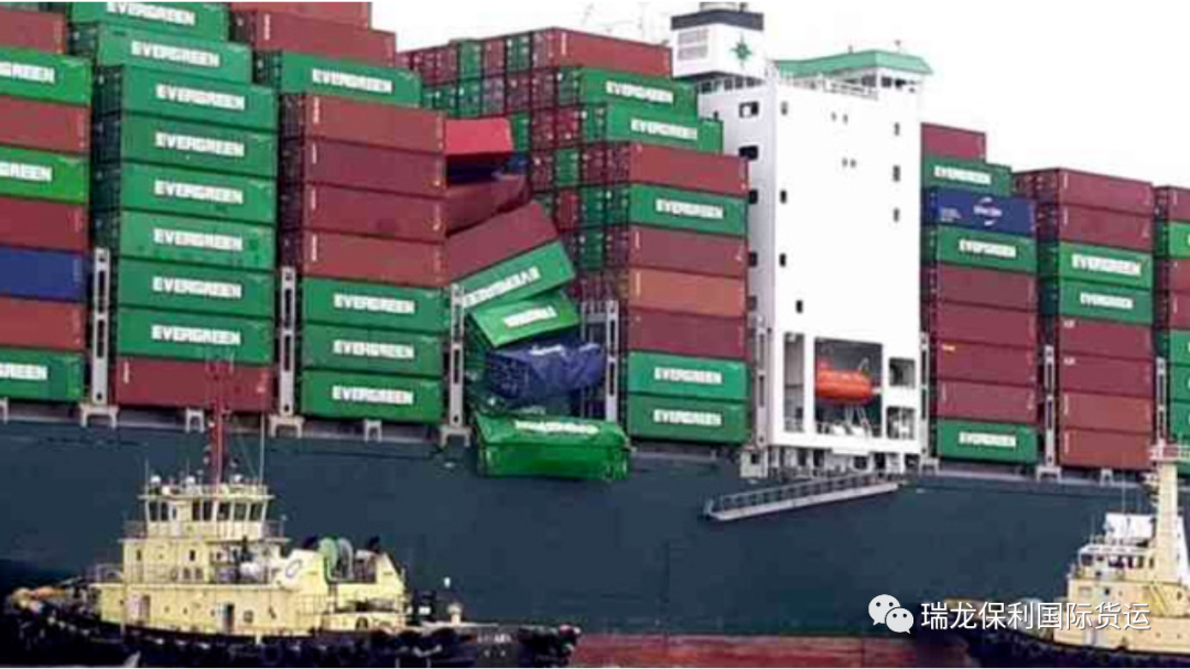 36个40尺集装箱落水,另有21个40尺的集装箱倒塌掉落到甲板上,遭受了不同程度的破坏