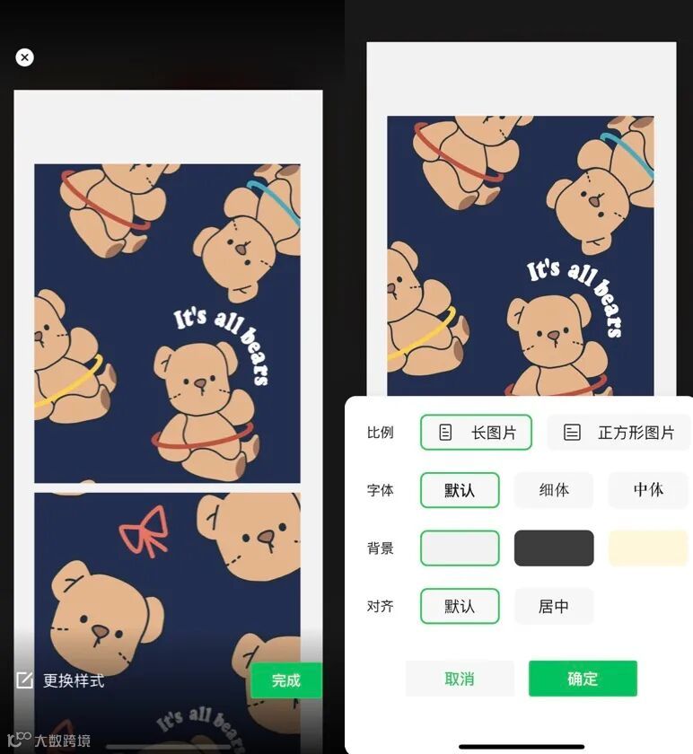 如果你是iPhone用户的话,你还可以更改样式,拼长图app get成功~