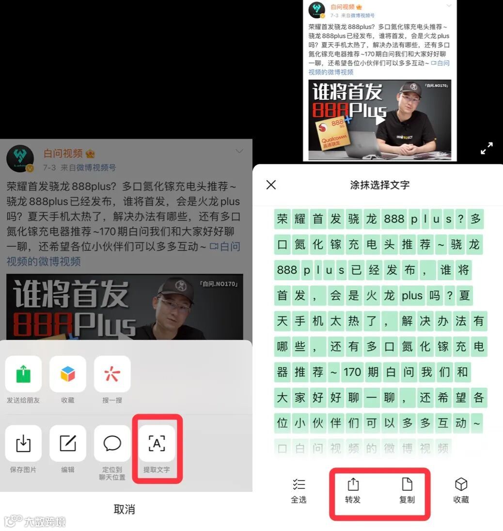 这个功能是小编我经常会用到的,平常别人发给我的截图,我可以直接长按图片点击【提取文字】,识别之后选择需要复制的文字,然后点击复制或者转发就好了。不需要自己手打,超方便。