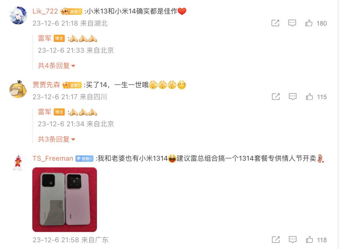 而在雷军的微博评论区不少网友也是借此调侃建议小米可以出了一个1314套餐专供情人节开卖。