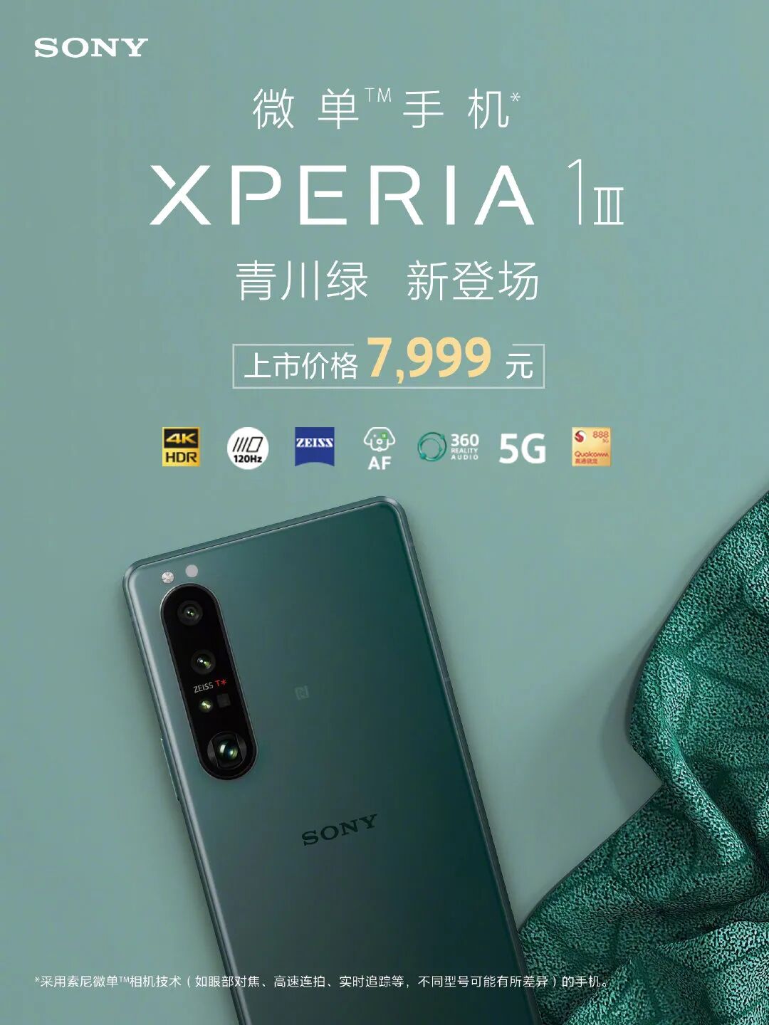 如上图所见,索尼Xperia 1 III新增好久不见的「青川绿」配色,12+256GB售价7999元,11月1日正式发货。现在参与预售等活动或领券到手价可以做到7499元。