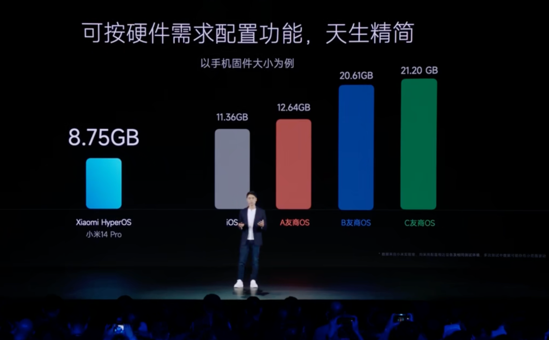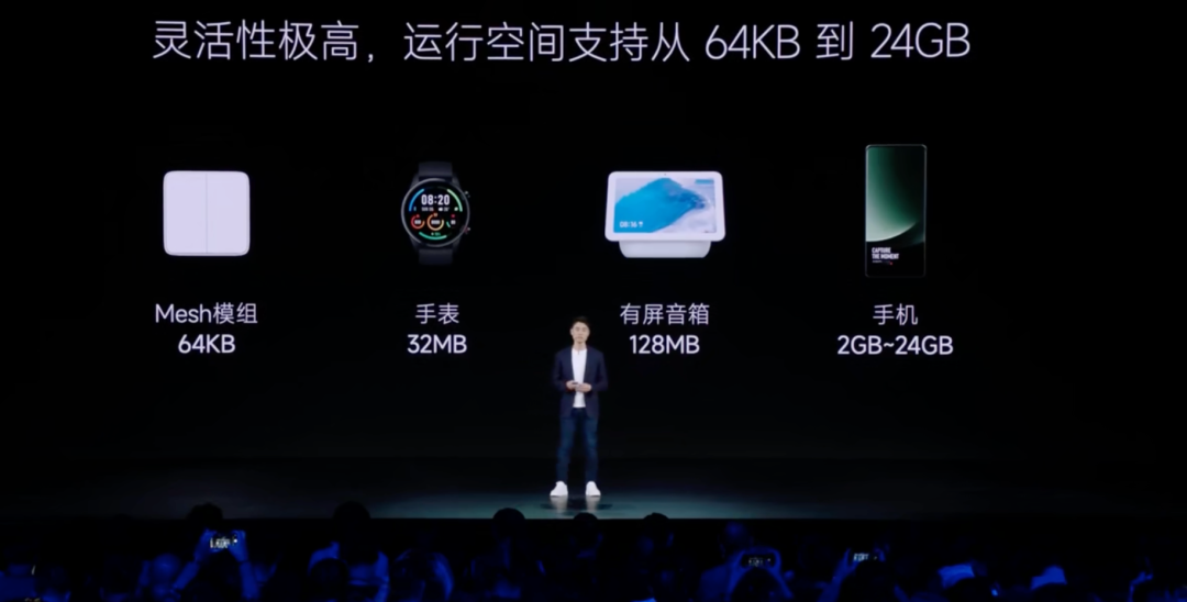 据了解,小米全新操作系统:小米澎湃OS(英文名Xiaomi HyperOS)主打「以人为中心,打造人车家全生态操作系统」,是小米史上最大规模「底层重构」,支持200+处理器平台、20+文件系统 兼容各种常见存储类型,200+种硬件品类,运行空间支持从64kb到24GB,可按硬件需求配置功能;
