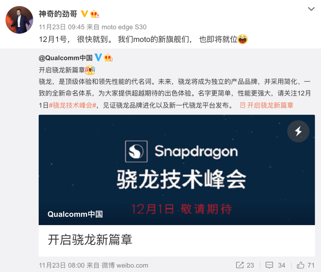 将于北京时间12月1日7:00起举办的骁龙技术峰会上发布
