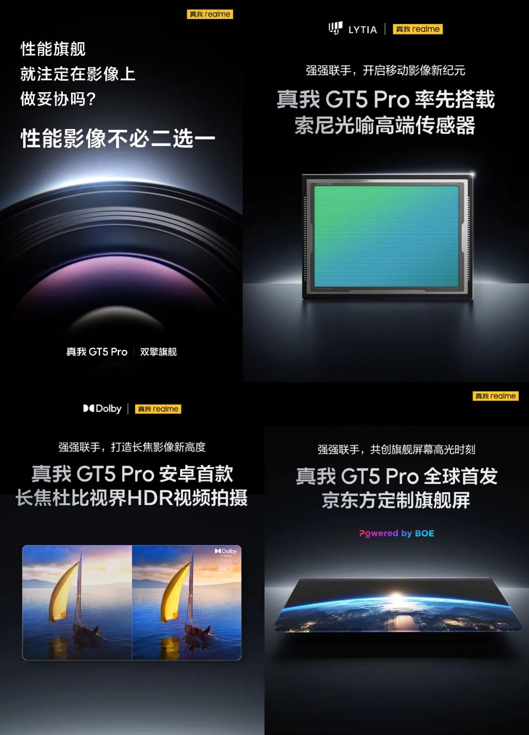 官方预热真我GT5 Pro将全球首发京东方定制旗舰屏,率先搭载索尼光喻高端传感器,是安卓首款支持长焦杜比视界HDR视频拍摄的手机。