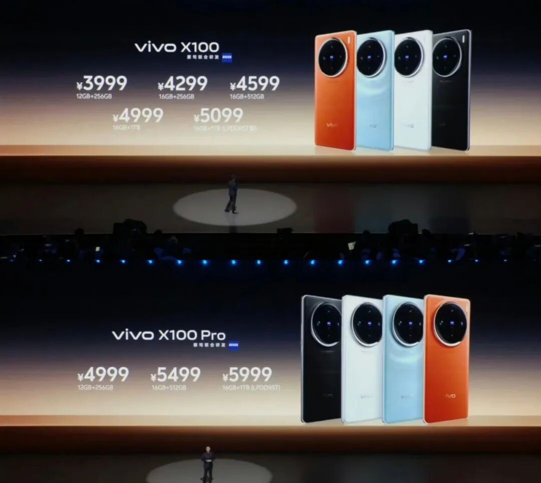 价格上,【vivo X100】12+256GB版3999元 ,16+256GB版4299元,16+512GB版4599元,16GB+1TB版4999元,16GB+1TB(LPDDR5T版本)5099元;【vivo X100 Pro】12+256GB版4999元 ,16+512GB版5499元,16GB+1TB版(LPDDR5T)售价5999元,目前已开启预售,将于11月21日正式开售。(Pro白色版本开售较晚,12.12开卖)