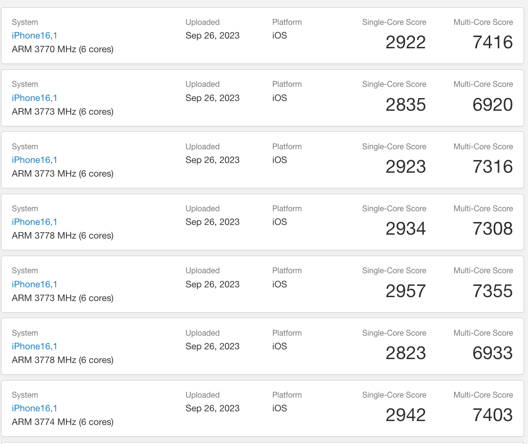 再来回顾下苹果A17 Pro的表现,华硕工程机的多核成绩(7048)可以说是接近A17 Pro了,甚至相较个别几组成绩还要高出一丢丢。