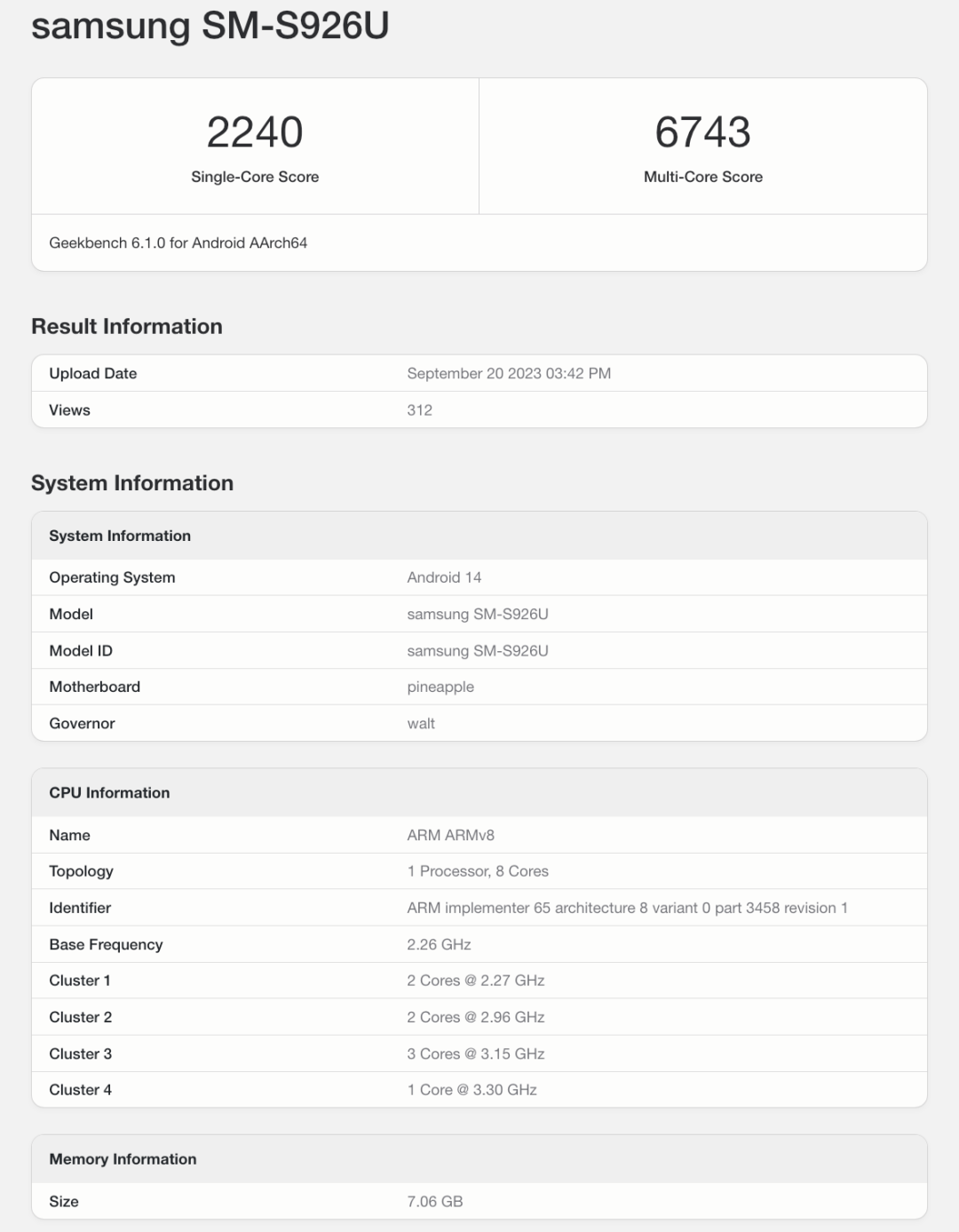 首先是CPU方面,据91mobiles披露,华硕ROG Phone 8 Ultimate将搭载骁龙8 Gen3标准版,目前在Geekbench 6.1下最高一组跑分为单多核2213/7048,CPU和之前曝光一致,1+5+2架构,1*X4 3.19GHz➕5*A720 2.96GHz➕2*A520 2.27GHz。