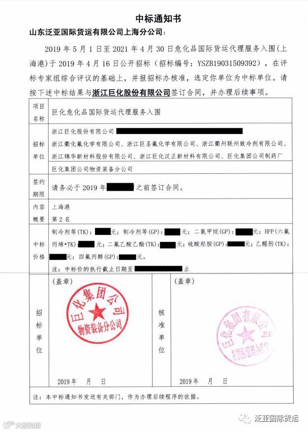巨化集团为国有特大型企业,全国最大的氟化工基地,中国500强企业。本次招标中,多家同行参与,均具备不俗实力,竞争异常激烈。我司在众多的竞争者当中脱颖而出,是对泛亚的综合实力、业务能力的一次肯定,也是客户对泛亚服务的认可。