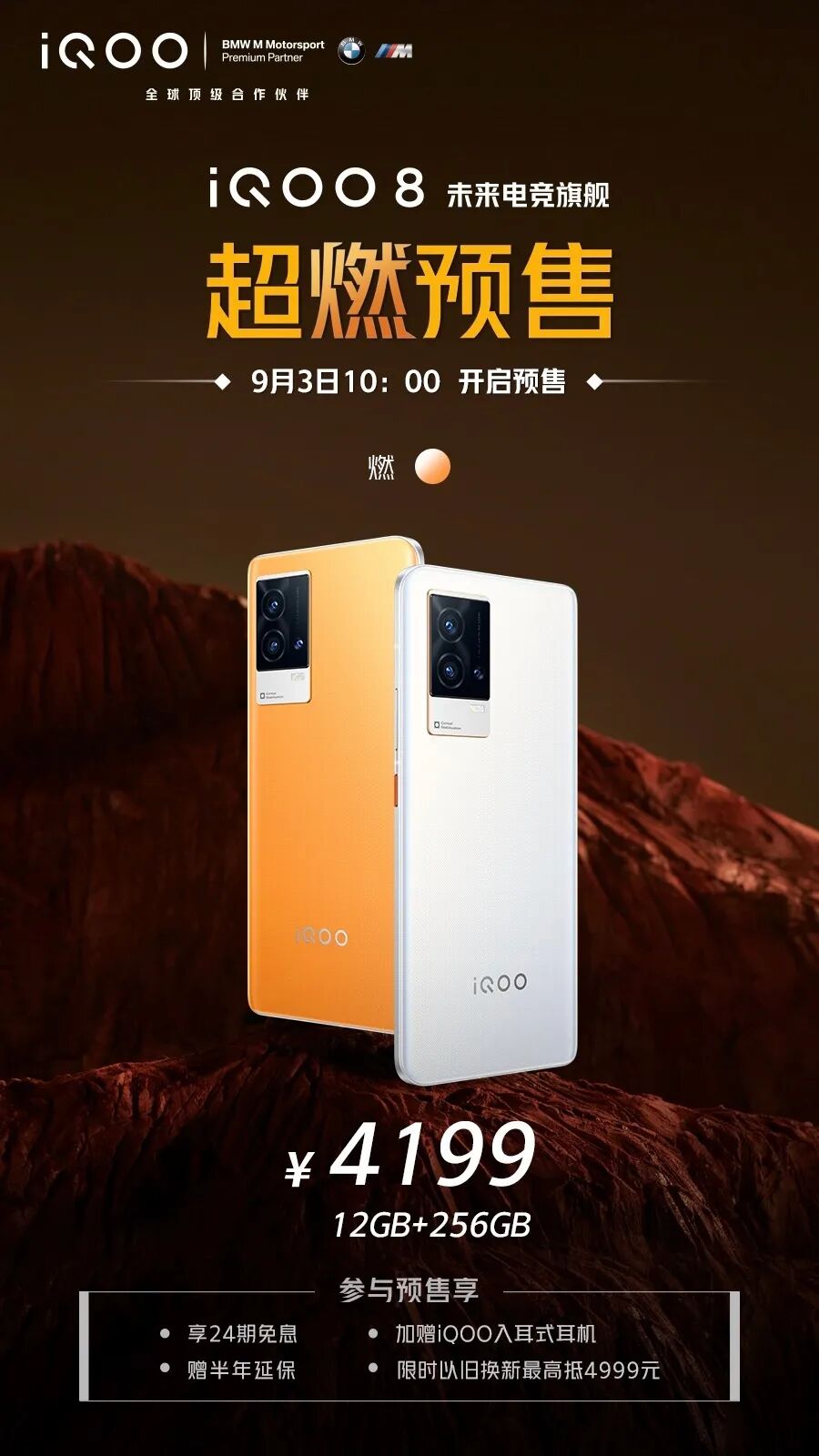 据官方表示,iQOO 8·燃的12+256GB版售价4199元,今天正式开启预售,支持24期免息等。