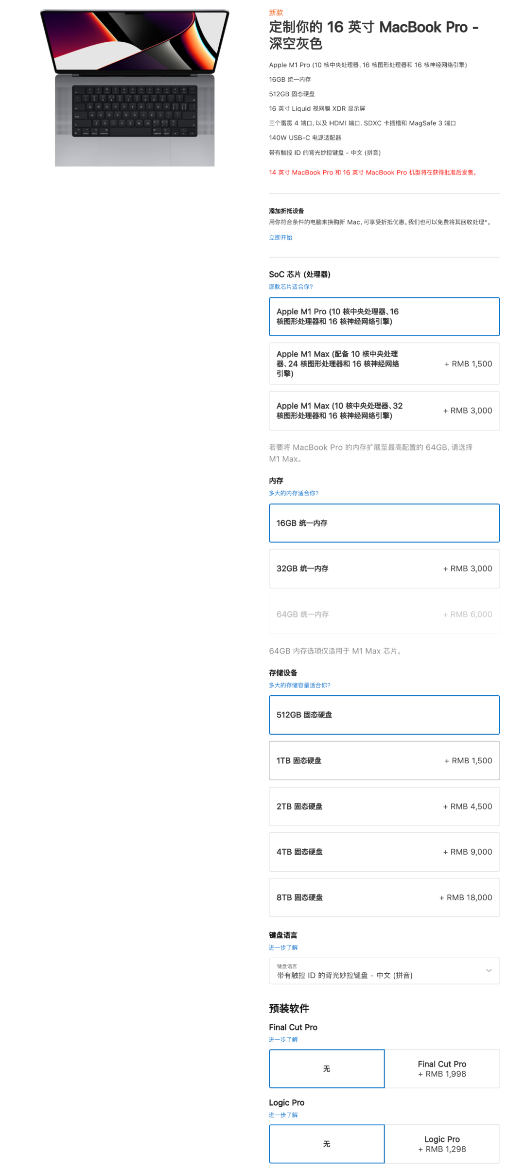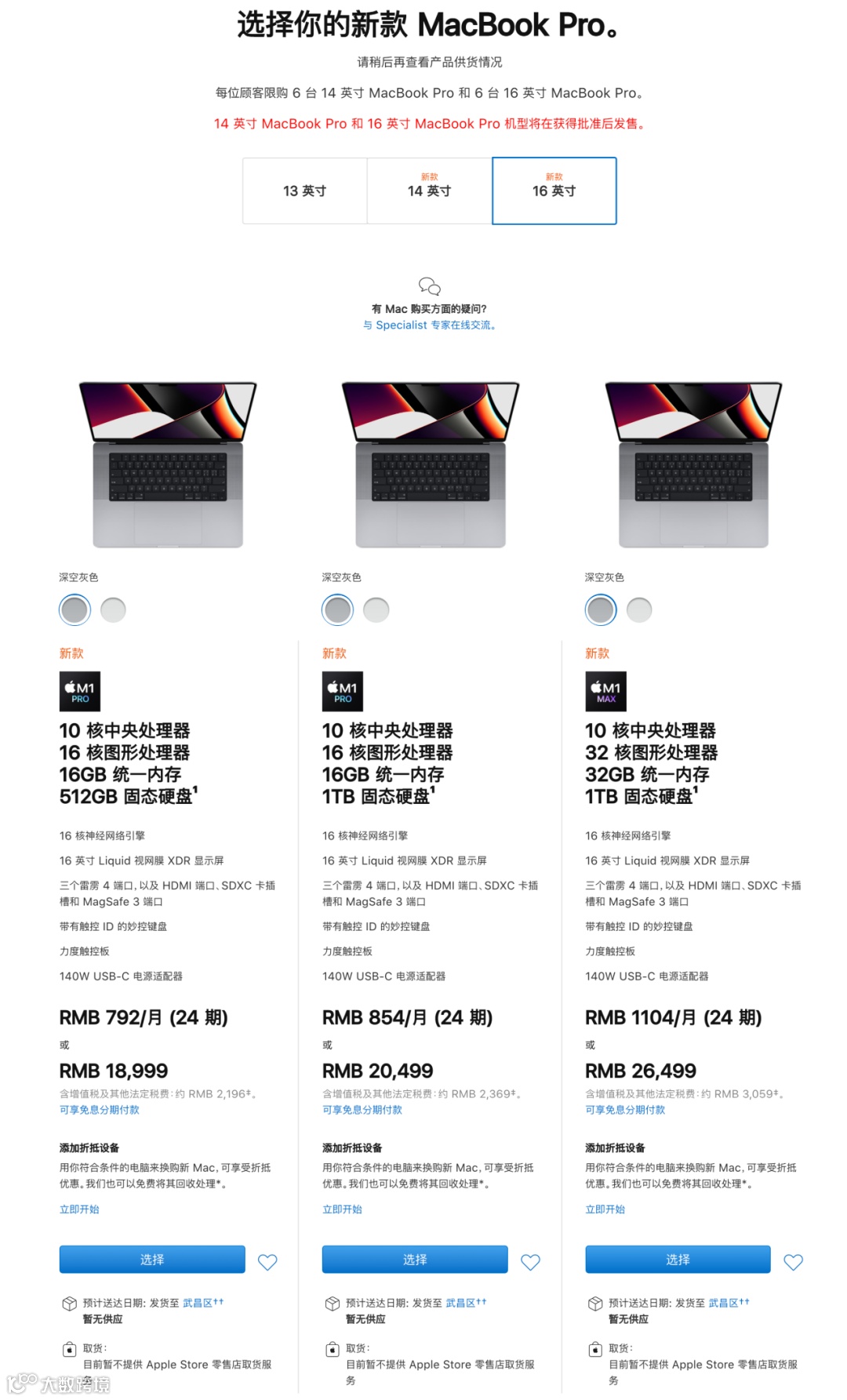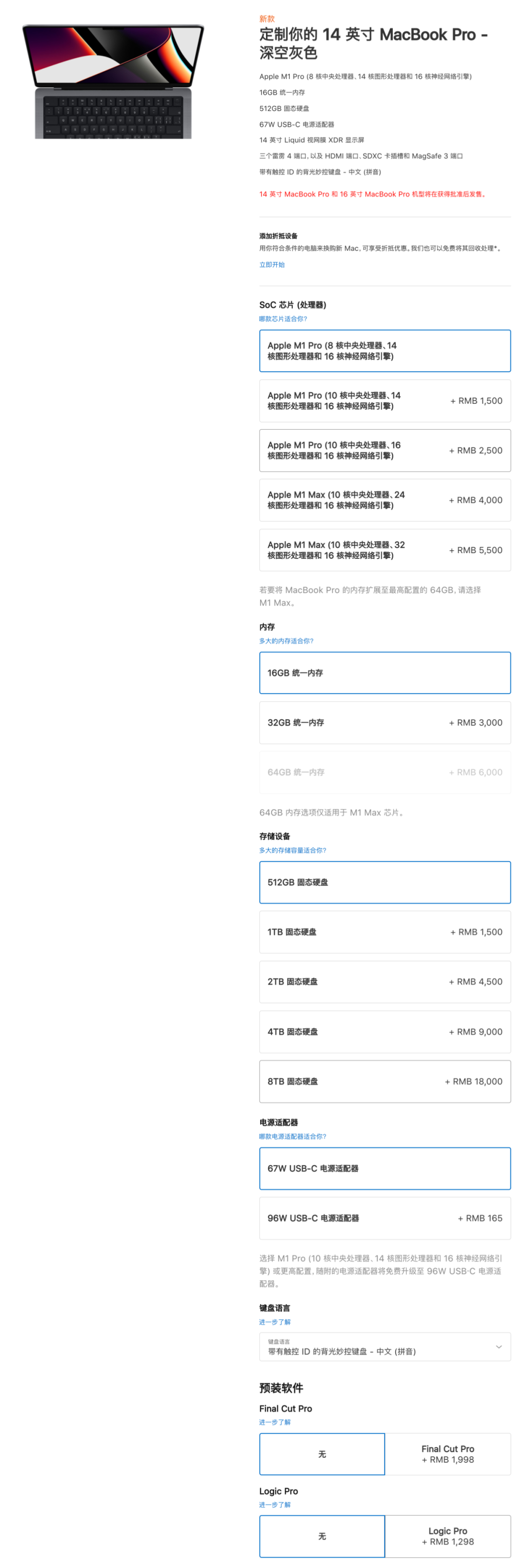 具体价格,新款14英寸MacBook Pro国行售价14999元起;