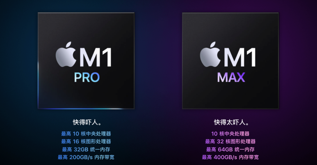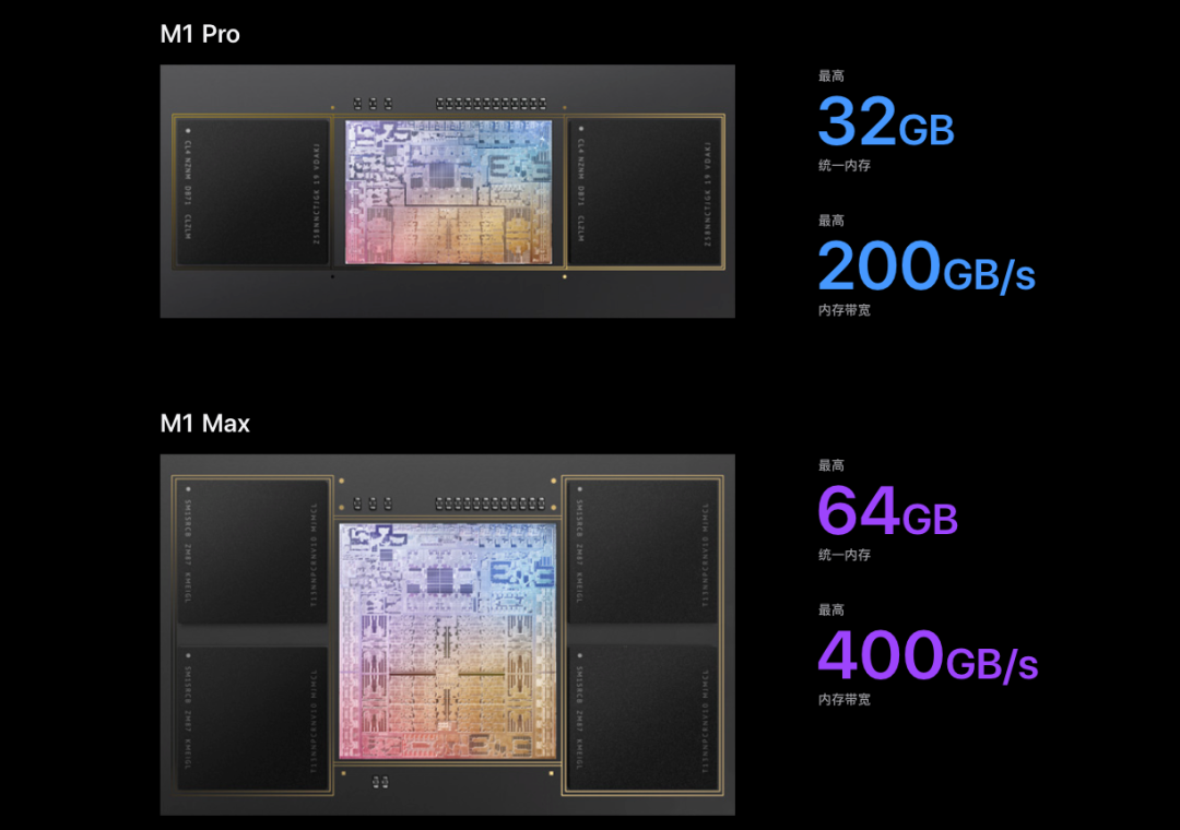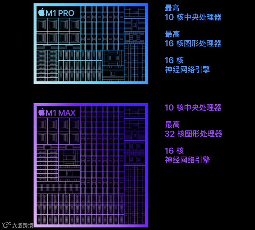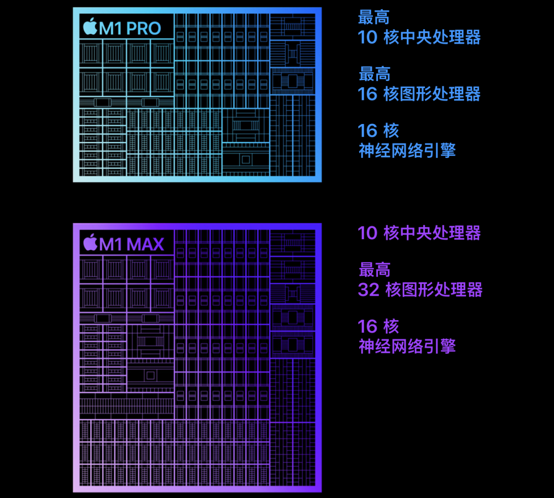 核心配置上,新款MacBook Pro搭载最新的M1 Pro和M1 Max处理器,新款14英寸MacBook Pro和16英寸MacBook Pro均可以自行选配M1 Pro还是M1 Max。