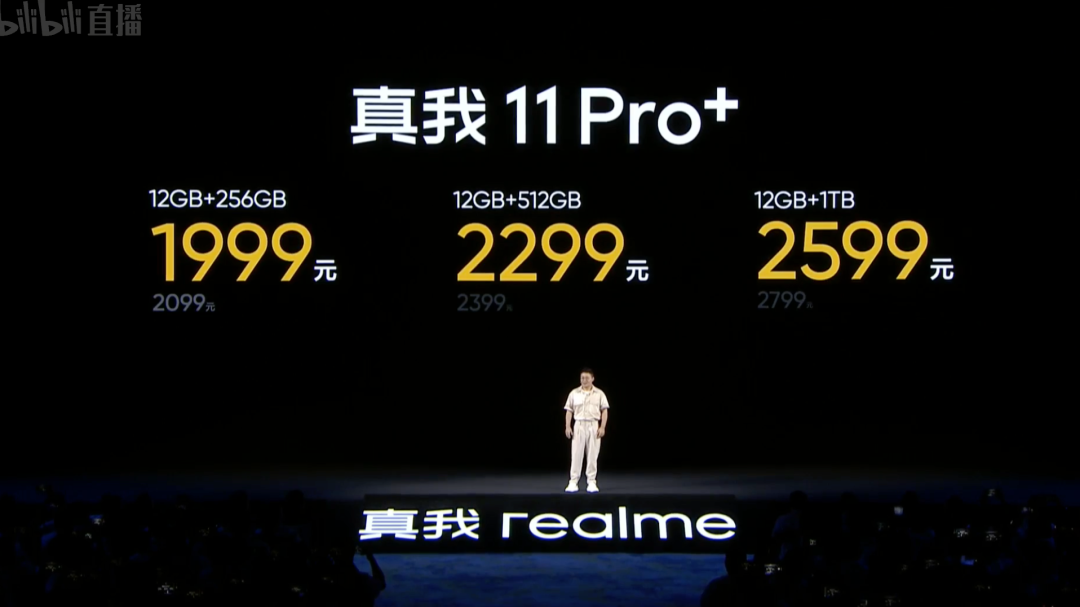 价格上,真我11 Pro+全系12GB运存,12+256GB版售价2099元、首发价1999元,12+512GB版售价2399元、首发价2299元;12GB+1TB版售价2799元、首发价2599元。目前已开启预售,5月15日10:00正式开售。