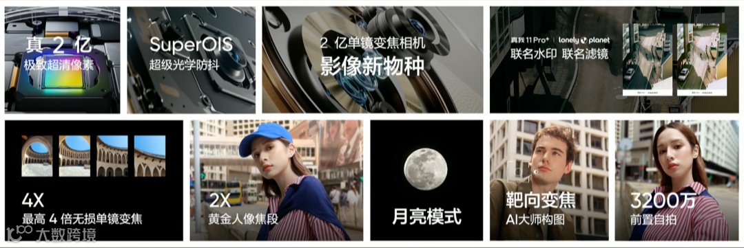 【真我11 Pro+】主要配置:6.7英寸2412*1080分辨率2160Hz PWM高频调光OLED曲面屏,2.33mm窄下巴,120Hz屏幕刷新率、360Hz触控采样率(1260Hz瞬时触控采样率),局部峰值亮度950nit,全局最高800nit,光学屏下指纹,提供日出之城/绿野之城(肤感荔枝纹素皮后盖)、星夜黑3个配色,机身重约183/189g,前置32MP 索尼IMX615,后置三摄200MP主摄(三星HP3 F1.69大光圈 有OIS)+8MP超广角+2MP微距,主打价位段最大底最大光圈,2亿像素单镜变焦;