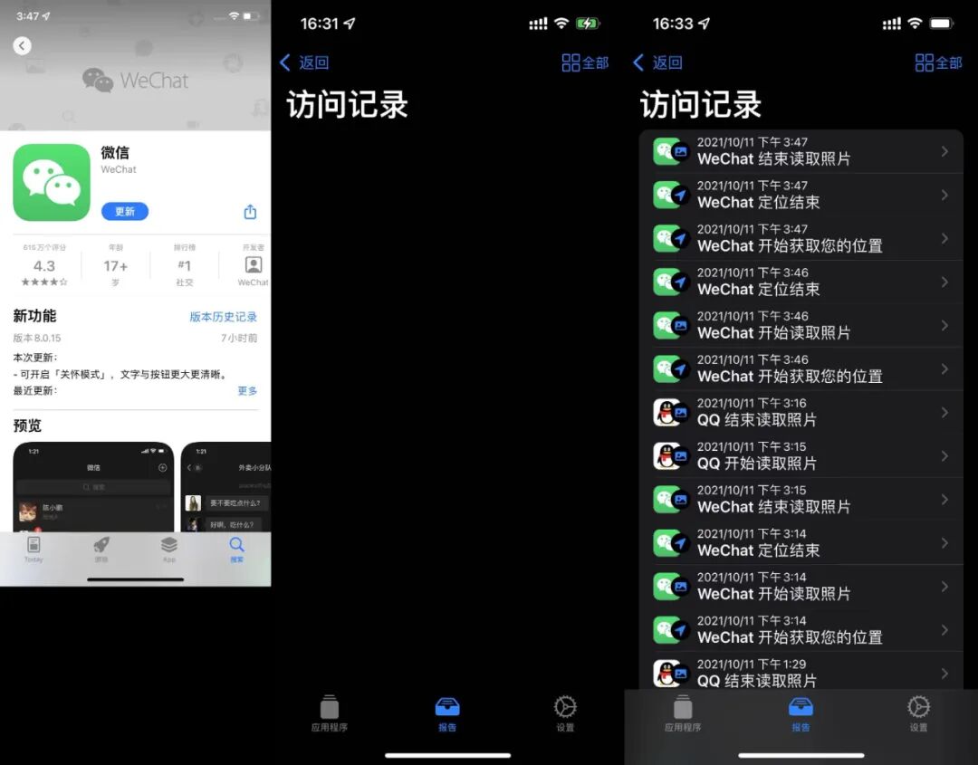 今天我们发现微信iOS端已经更新了8.0.15版本,再次使用iOS 15的记录App活动日志测试了一遍,发现已经改进了后台频繁读取相册的问题。这次曝出问题到解决问题总体来说还是挺快的,希望之后也能多多听取用户意见吧。