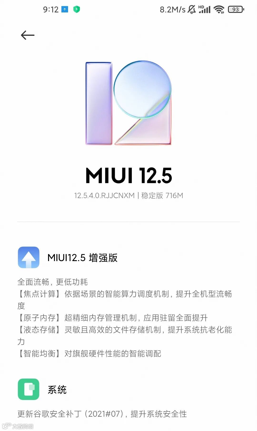 现在已经有网友反馈部分机型提前收到了MIUI 12.5增强版的推送包,如果你的机型在首批适配名单中,也可以看一下自己是否提前收到推送包~