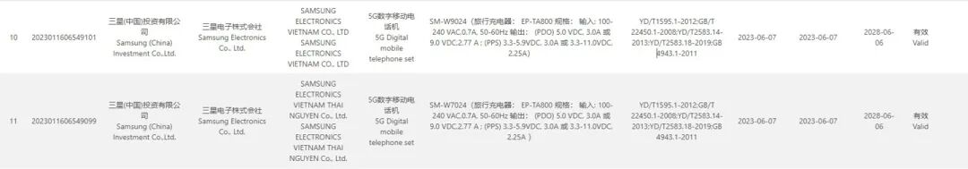 由于W系列现在是Fold系列的小改款,所以W系列这两款新机也和4月23日获得认证的三星Galaxy Z Fold5和Z Flip5一样,最高都是25W。