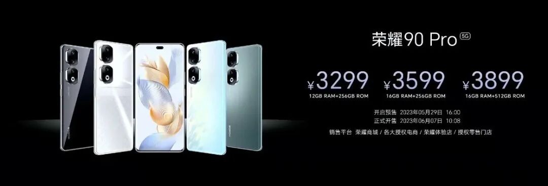 价格上,荣耀90 Pro:12+256GB版售价3299元,16+256GB版售价3599元,16+512GB版售价3899元,目前已开启预售,将于6月7日10:08正式开售。