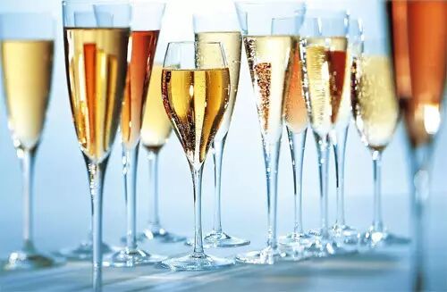 香槟(Champagne)是最著名的起泡酒,产于巴黎北部香槟地区,具有神秘、诱惑和浪漫的色彩。传统的香槟酒是采用发酵后的干白葡萄酒加糖、酵母、再装瓶,在瓶中进行再次发酵制成,酒精浓度约为9%-14%。