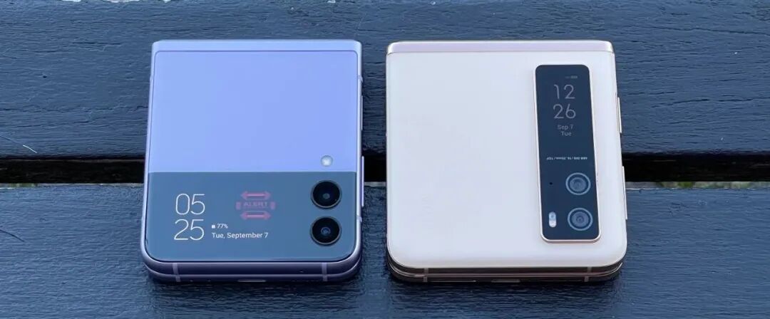 上图是国外网友实拍对比三星Z Flip3、TCL折叠屏、摩托罗拉