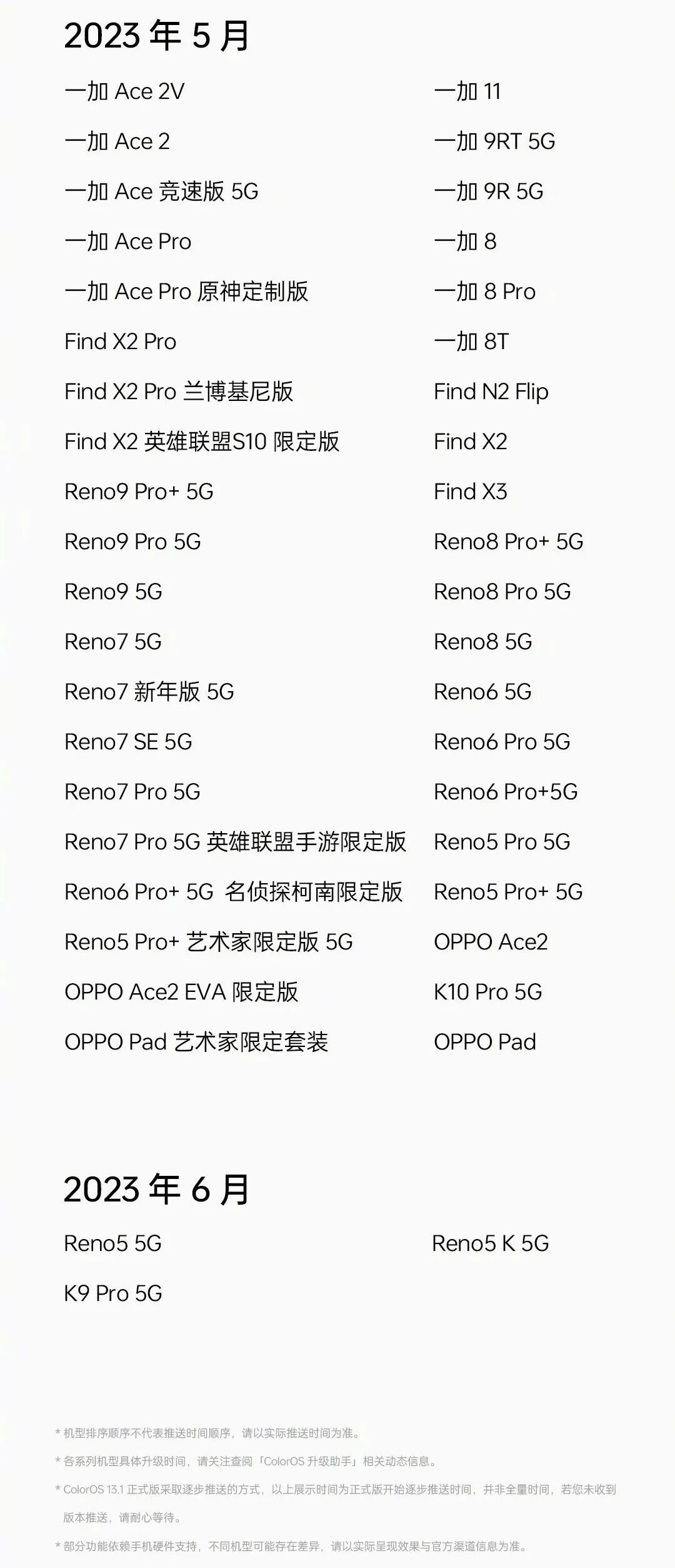 附上ColorOS 13.1的近期升级计划表。OPPO和一加用户都可以看看有没有自己的机型。大家觉得这波适配速度怎么样?