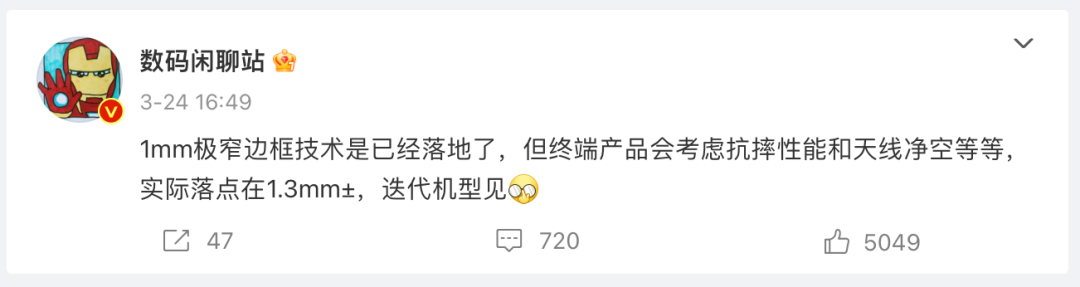 同时TCL华星介绍,除了让屏幕下边框较现有产品缩窄至少20%,实现超高屏占比外,TCL华星极窄边框技术还实现了降本增效,优化性能,在不增加面板边框的前提下,搭载TCL华星窄边框技术的显示屏可降低同等亮度约8%的发光功耗,进一步实现低功耗长续航。目前TCL华星窄边框技术已完成量产开发。