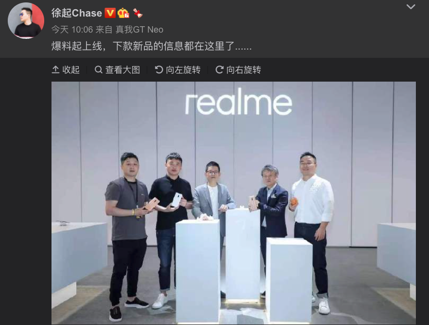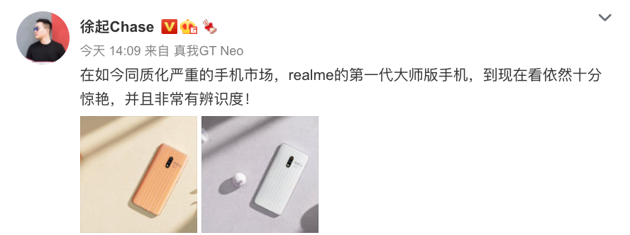 据realme徐起在微博晒的图片来看,其应该是暗示realme新机会有大师版,结合早前爆料来看,这款新机应该是realme X9系列(