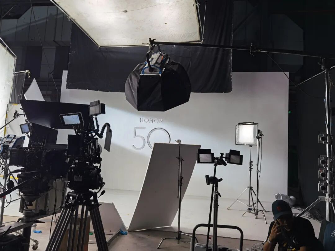 另一边,有小伙伴私信投稿了一张物料图,,并透露荣耀50系列会邀请明星担任代言人,但是并未透露这位代言人的名字。