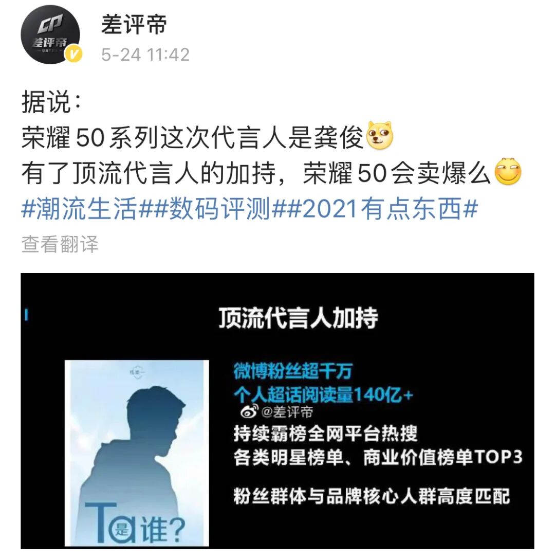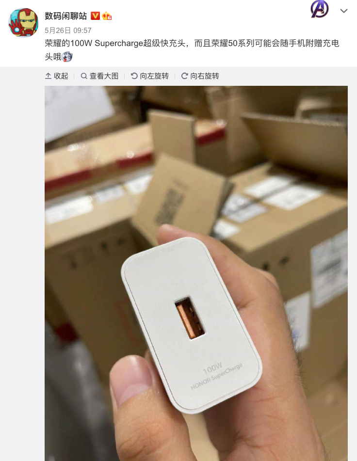【品牌】荣耀50系列100W充电头曝光 代言人或为龚俊