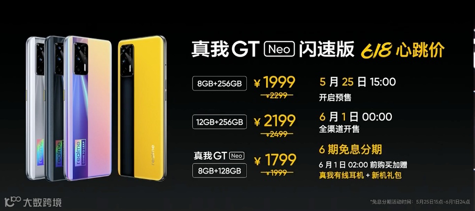-另外是「realme真我GT Neo闪速版」,同样是为618大促而生 相较之前发布的 GT Neo ,「闪速版」主要变化:①新增「曙光」素皮配色;② 50W快充→ 65W闪充 等细节。其他配置变化不大,依然是天玑1200等,俨然是闪速版性价比更高。