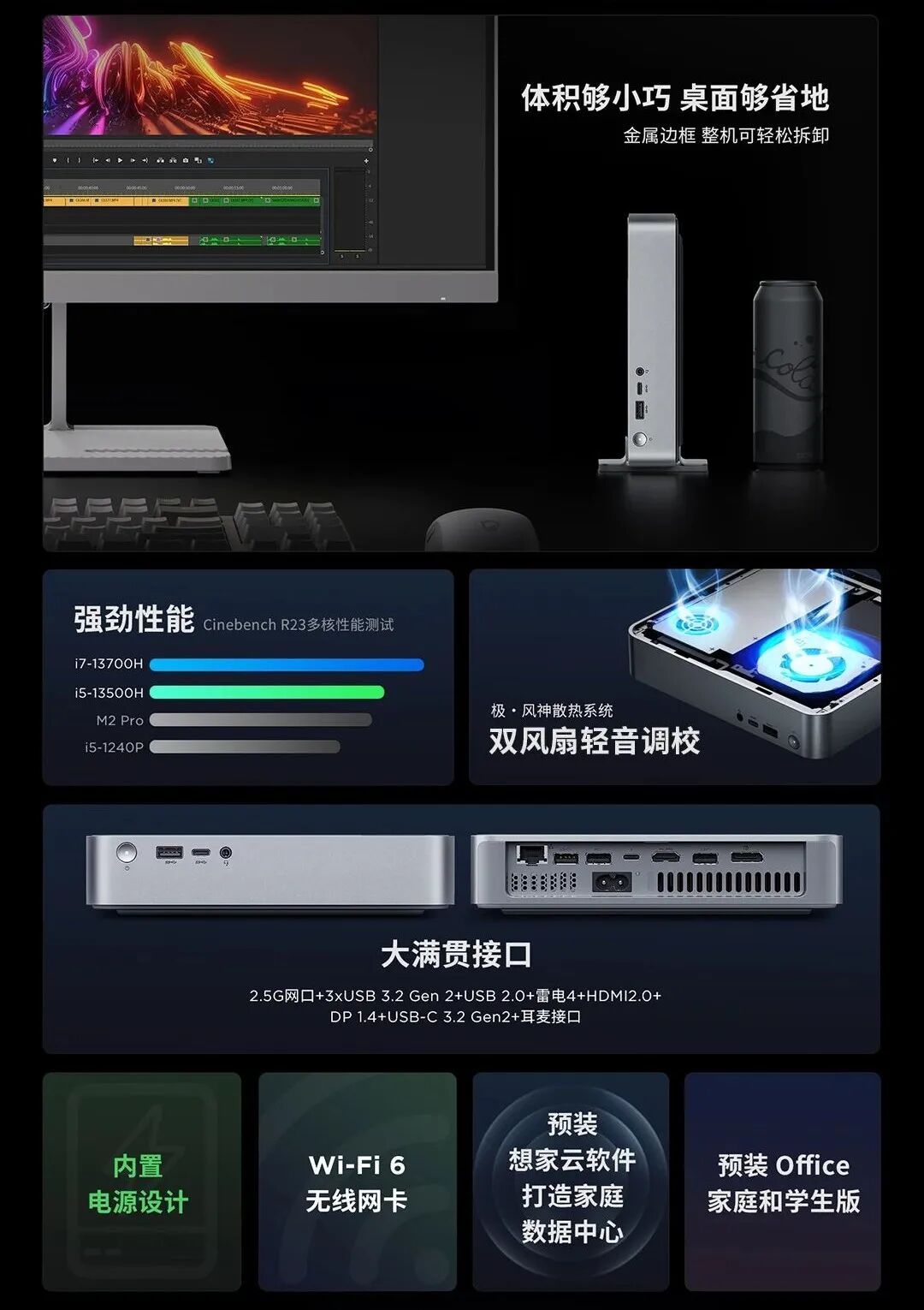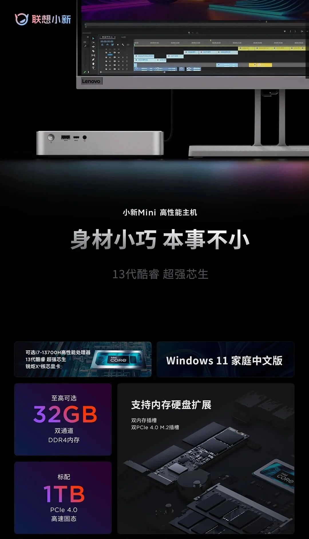 价格上,「小新Mini高性能主机」提供两个版本, i5-13500H/16G内存/1TB版售价3999元(首发价3699元), i7-13700H/32GB/1TB版售价4999元(首发价4699元),目前已经上架。大家觉得这款主机怎么样?