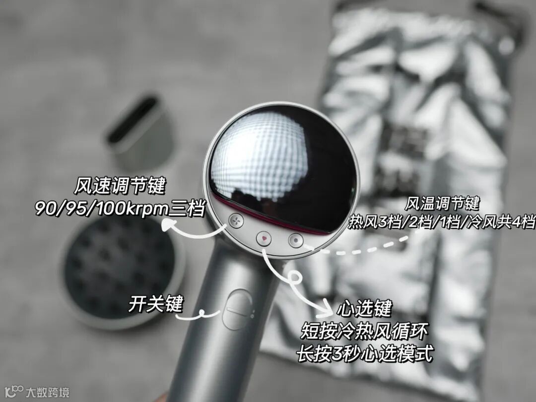 从设计上对比,传统吹风机多是高温烘干原理,通过大功率升温来烘干头发,或多或少都会对头发造成热损失,直白则是依靠大风量来实现速干,应用航天级涡轮动力学原理,10万转/分的高速数码马达,15L/S的风量,比普通大功率吹风机的风量直接高出1倍左右,堪称吹风机里的风量之王,靠大风量实现风干也能有效避免传统烘干型吹风机伴随的热损伤问题。