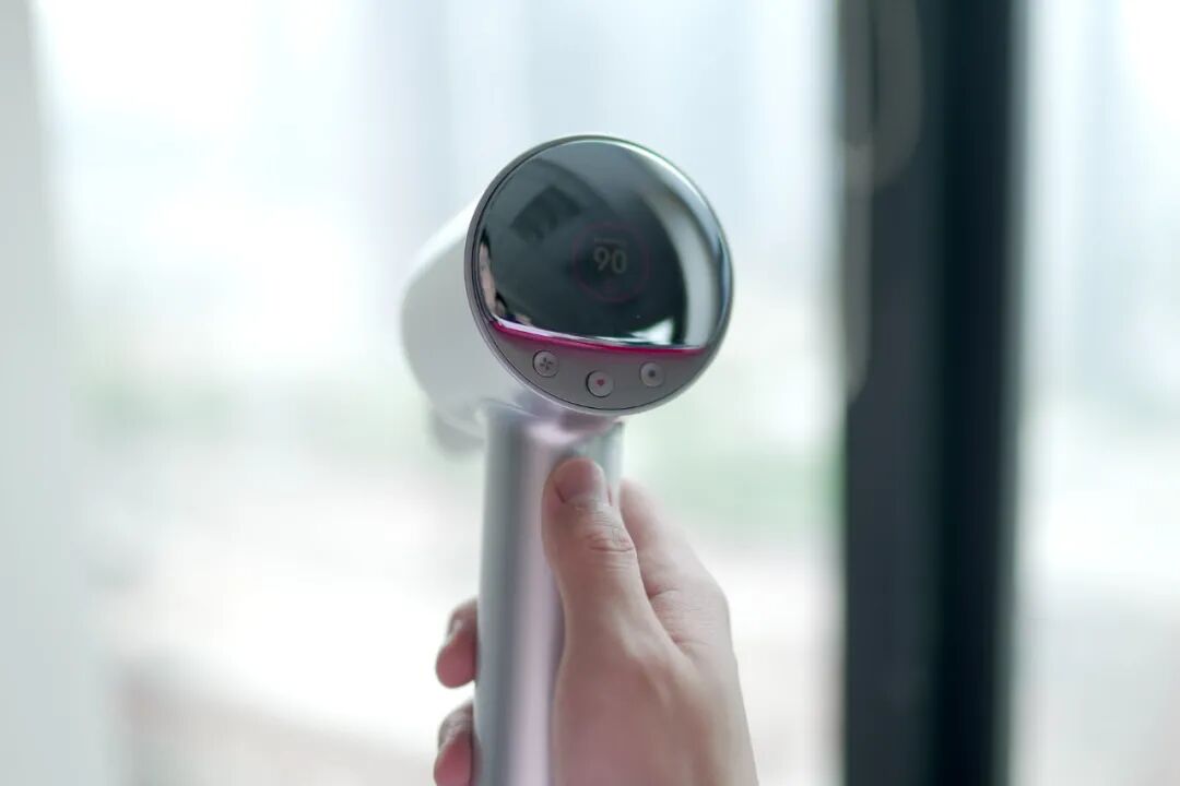 第一次看到吹风机还配备有显示屏的,非常独特,据了解直白这款HL908也是直白自主研发设计的第一台LCD显示屏电吹风,圆形的LCD显示屏搭配银白色的机身整体有点像宇航员的👩🏻🚀面罩+太空服,非常漂亮精致。