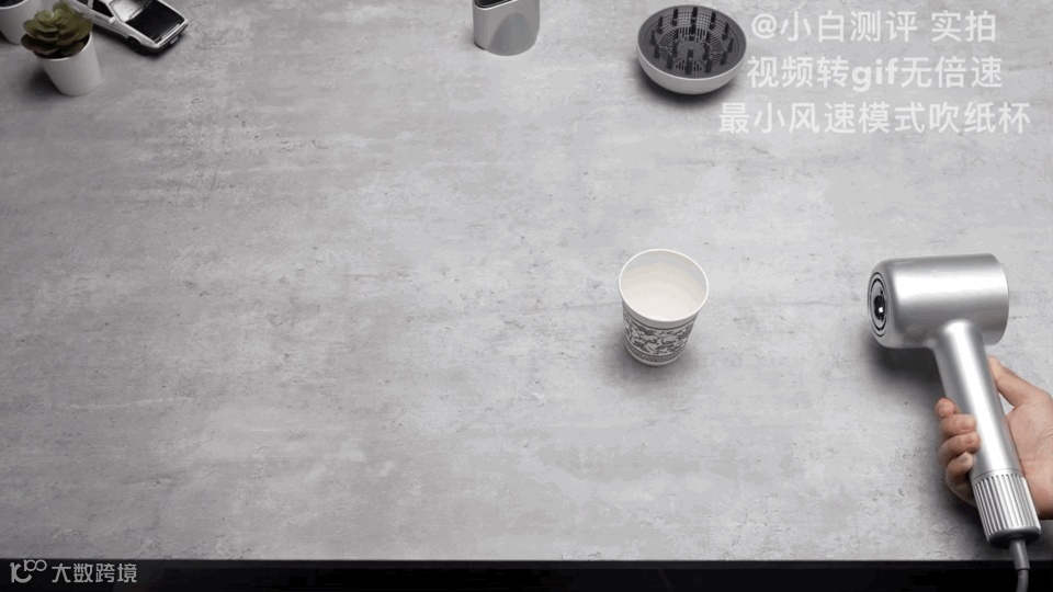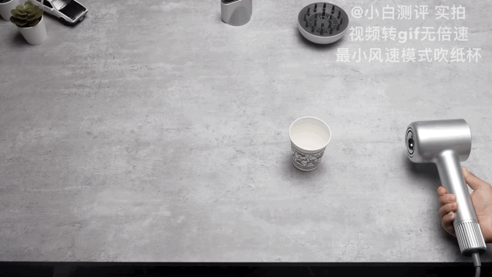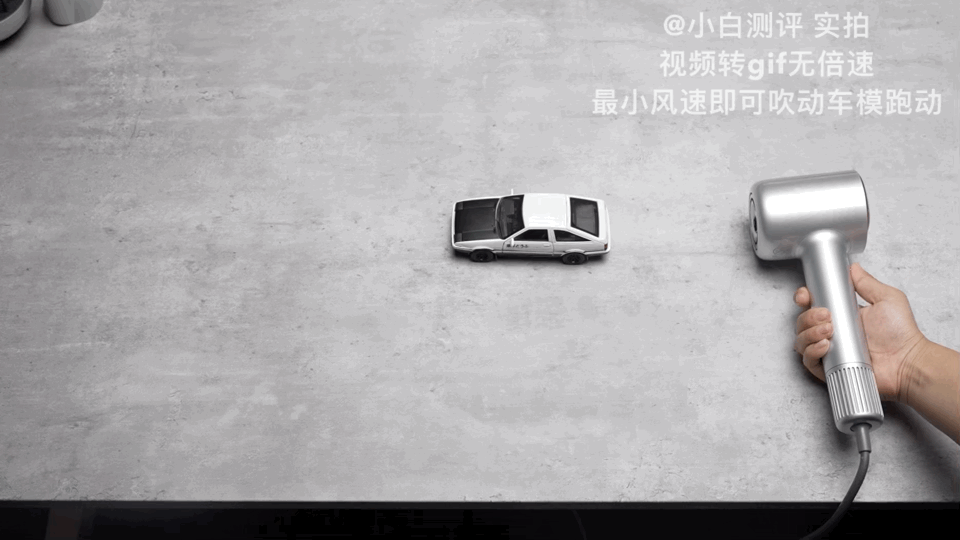 实测风力也感知很强劲,最小模式的风力吹动纸巾嗖一下就飞到了天花板,吹动一次性纸杯也嗖一下飞出很远,还能吹动AE86车模飞驰,像小编比较细软的短发实测一分钟就可以吹干。