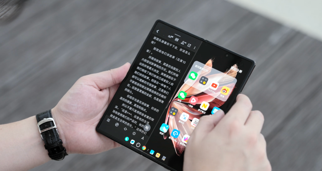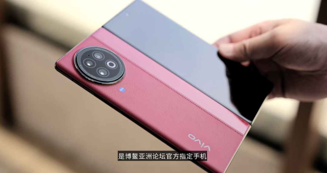 据介绍,vivo X Fold2华夏红配色,采用素皮和玻璃「两仪万象」的拼接设计,官方称玻璃下面的纹路代表了《千里江山图》的神韵;另外采用天圆地方的相机模组设计,超广角+广角+人像三摄,潜望长焦取消了。细节上,内外屏尺寸和上一代基本相同,均支持120Hz刷新率,同时内外屏均有屏幕指纹,支持湿手解锁,支持60-120°自由悬停,机身相比上代轻薄了不少。