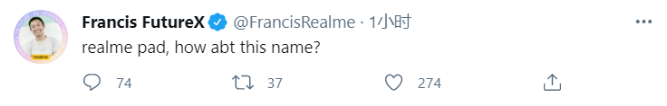 今天realme印度与欧洲首席营销官CMO在推特发文询问大家“realme pad,这个名字怎么样”,或在暗示、甚至可以说是在明示realme将推出首款平板电脑。虽然暂时不清楚realme做平板电脑是什么配置,但从realme的品牌风格来看,应该也会主打性价比吧。