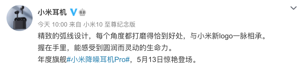 【耳机】小米年度旗舰降噪耳机Pro官宣5.13发布 vivoTWS2混战