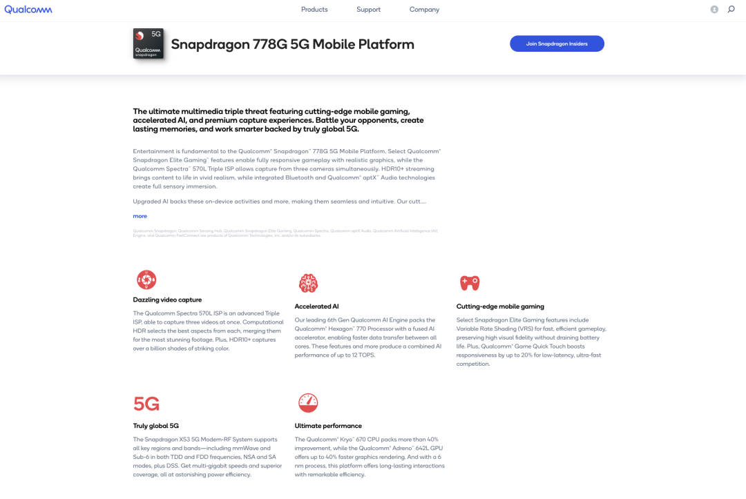 前两天还有爆料荣耀50系列或首发高通骁龙7系全新SoC,今天高通就悄然发布了这颗全新的SoC——骁龙778G处理器。