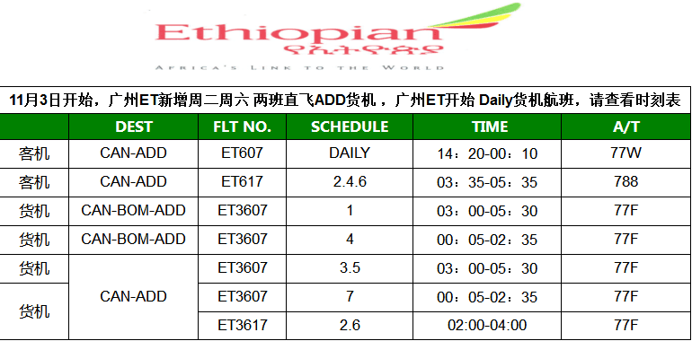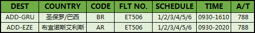 南美GRU/EZE首选埃塞俄比亚航空(ET)Daily 货机