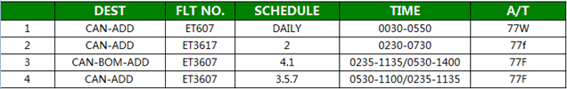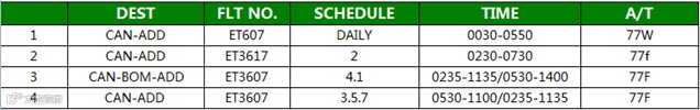 全货机 D1/4 经停BOM,D2/3/5/7 直飞ADD